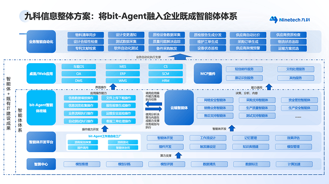 bit-Agent的价值不止于从动施行营业,更正在于其能深度融入企业现有智能体系统,成为智能体开辟平台的焦点动力。以往企业设想营业工做流时,需人工编排组件以及定义逻辑,从动化程度无限。而九科消息坐正在企业智能体扶植系统的全局视角,建立了一套完整的处理方案。